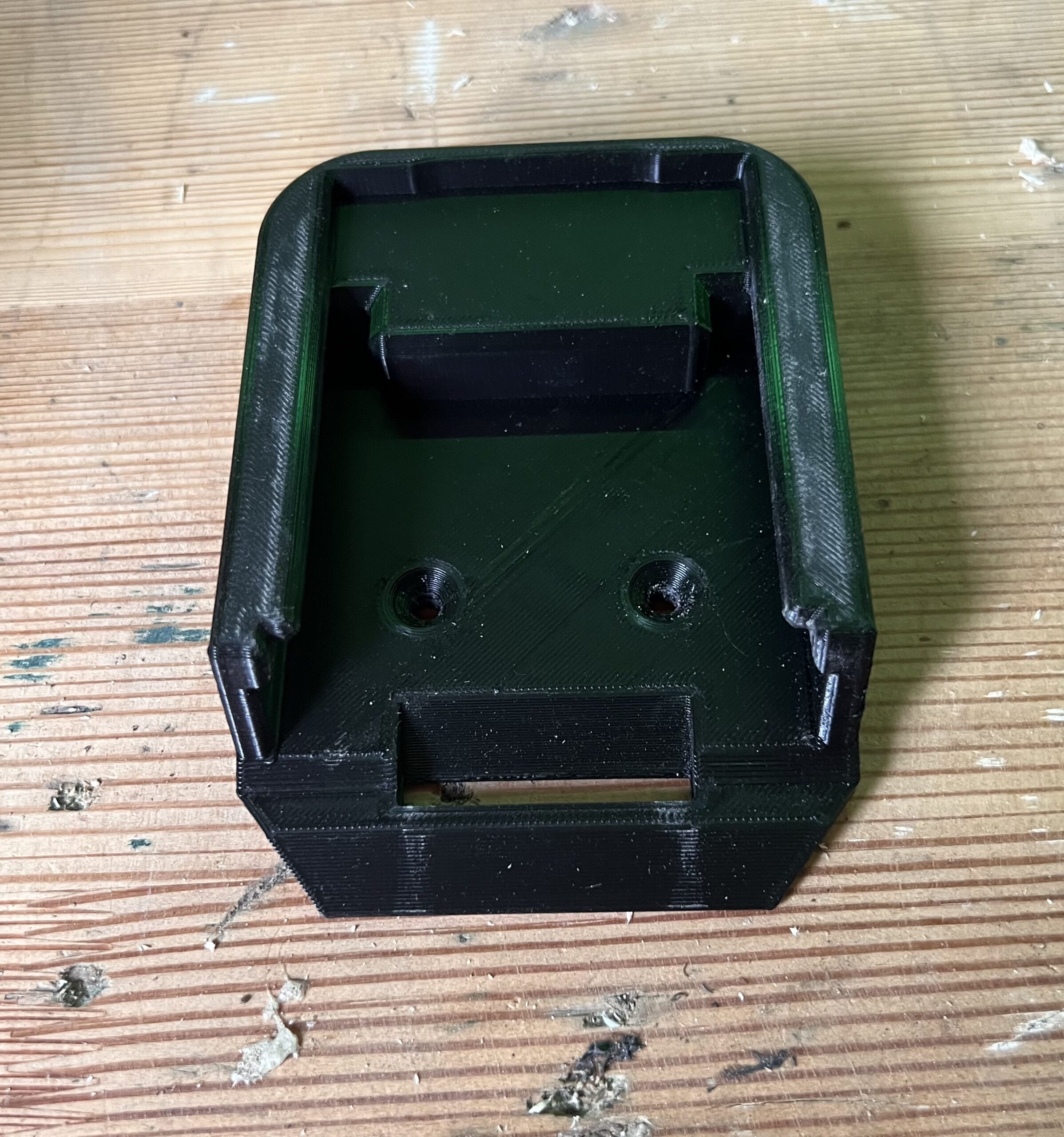 Deze 3D-geprinte accuhouder is een praktische oplossing om je accu’s netjes en stevig op te hangen. De accu klikt stevig vast in de houder en blijft goed zitten, ook bij ondersteboven montage. Ideaal voor gebruik in de werkplaats, garage of bedrijfsbus.
